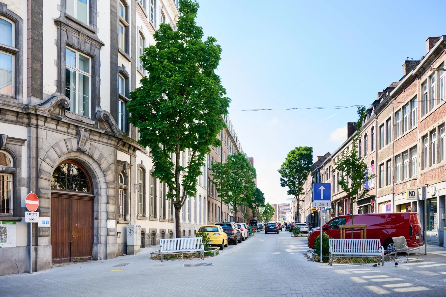 La rue de Bruxelles est rouverte à la circulation. Il s’agit d’une zone de rencontre, le stationnement des voitures est possible sur les places de stationnement marquées par un « P ».